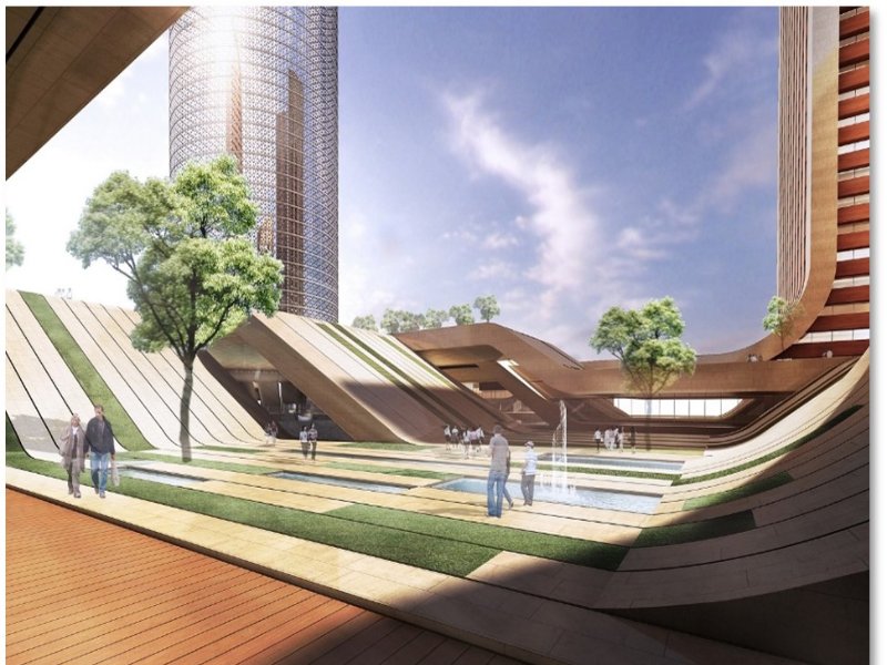 Plot Area: 103,489 m² • Built-up incl. basements: 691,706 m² • Showrooms: 4,262 m² • Offices: 35,000 m² • Hotel Rooms: 360 • Apts: 2BR 278 • 3BR 556 • 4BR 40